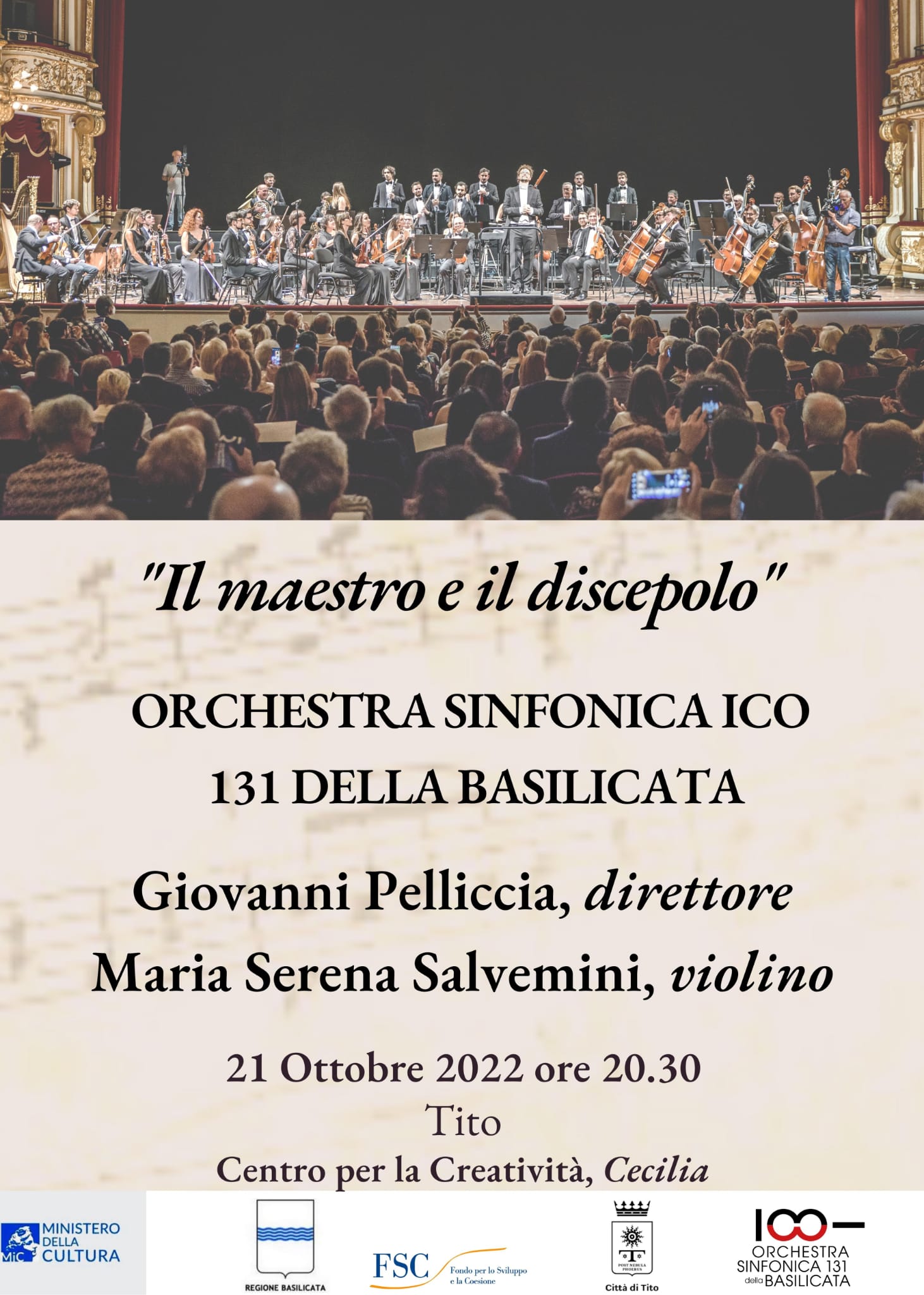 "Il maetro e il discepolo" è lo spettacolo che vedrà l'Orchestra ICO 131 della Basilicata esibirsi al Centro per la Creatività "Cecilia" di Tito il prossimo 21 ottobre alle ore 20.30. Giovanni Pelliccia dirigerà l'Orchestra e il violino di Maria Serena Salvemini.
