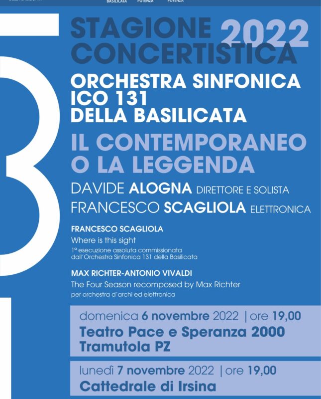 Si aprirà con una prima assoluta il concerto che l’Orchestra sinfonica 131 terrà il prossimo 6 novembre nel Teatro di Tramutola con replica il 7 nella Cattedrale di Irsina. La Direzione artistica ha infatti commissionato un brano al compositore Francesco Scagliola, apprezzato docente di Musica...